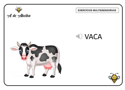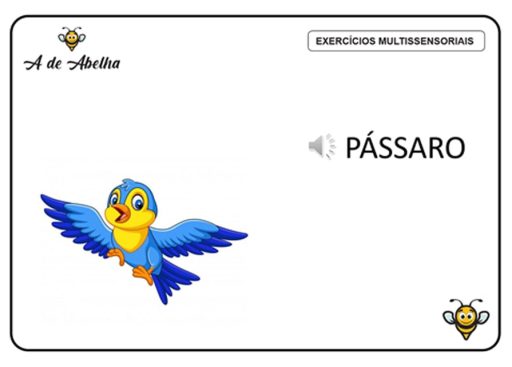 Nas etapas iniciais do processo, uma dica é aplicar atividades em áudio que treinem a capacidade de identificar e diferenciar sons (como de animais, por exemplo). Isso facilita, posteriormente, o ensino dos sons das letras. Veja, nas figuras abaixo, exemplos de atividades multissensoriais que trabalham com o discernimento de sons: