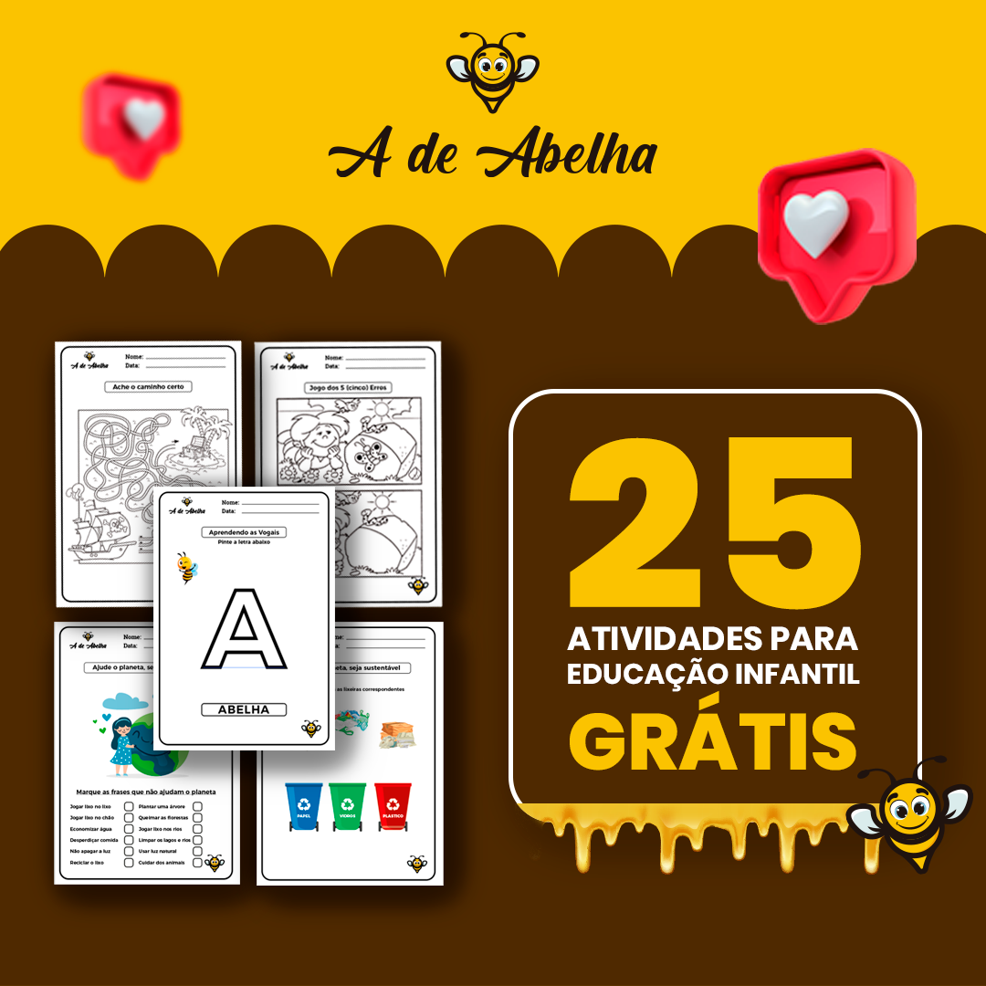 Com mais de 700 atividades para crianças entre 2 anos e 8 anos de idade, a apostila do A de Abelha é um material de apoio completo que garante momentos de diversão e aprendizado entre pais e filhos. A apostila, que é enviada diretamente para o seu e-mail pronta para imprimir, apresenta um conteúdo variado e de qualidade para educação infantil, com módulos que incluem atividades sobre o alfabeto, operações numéricas, sons, língua inglesa, sustentabilidade, entre outras áreas!
